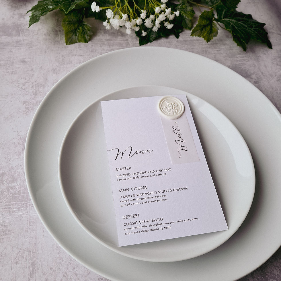 Choose from personalised menus, table signage and place settings, whichever you feel is best and appropriate for your guests and venue.